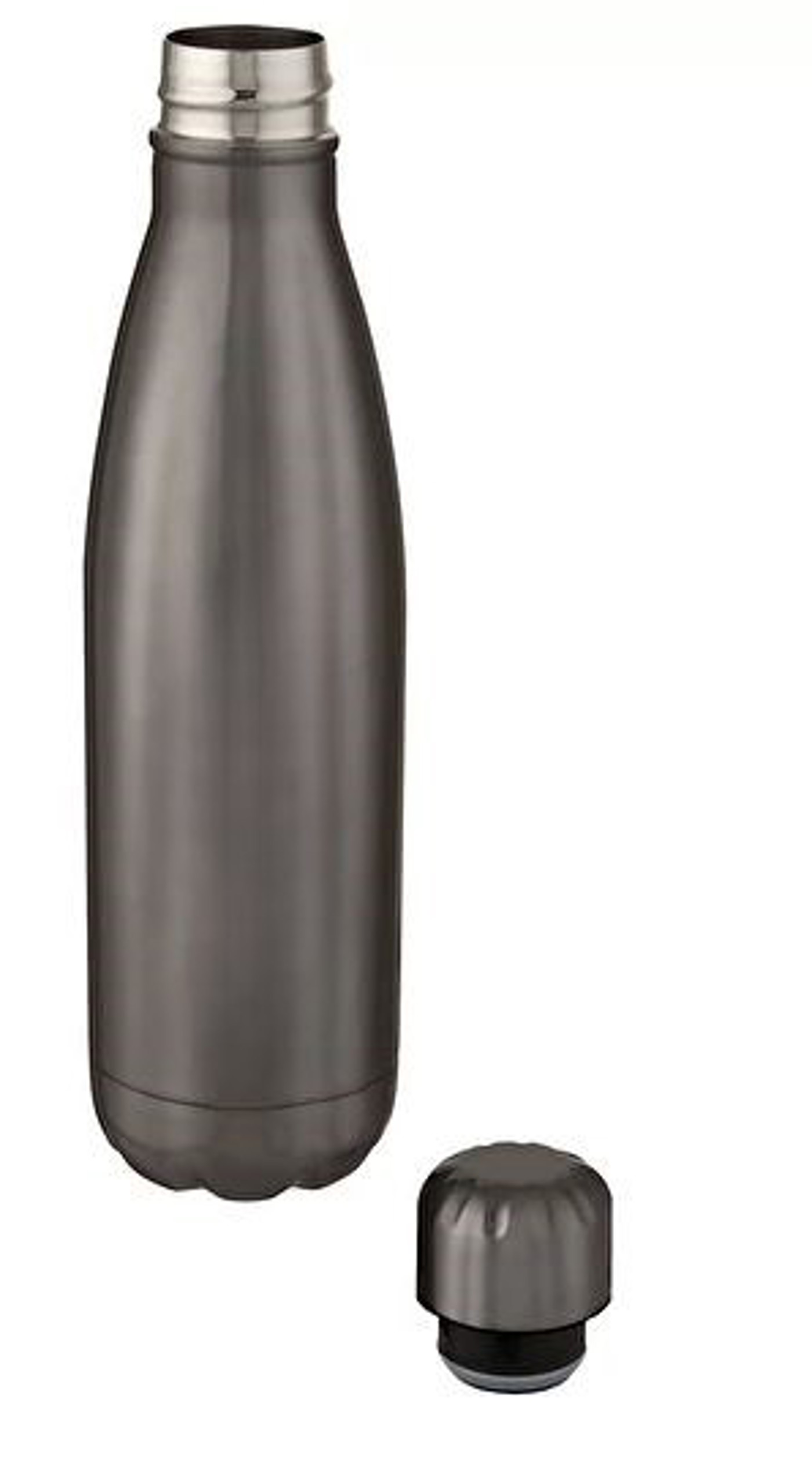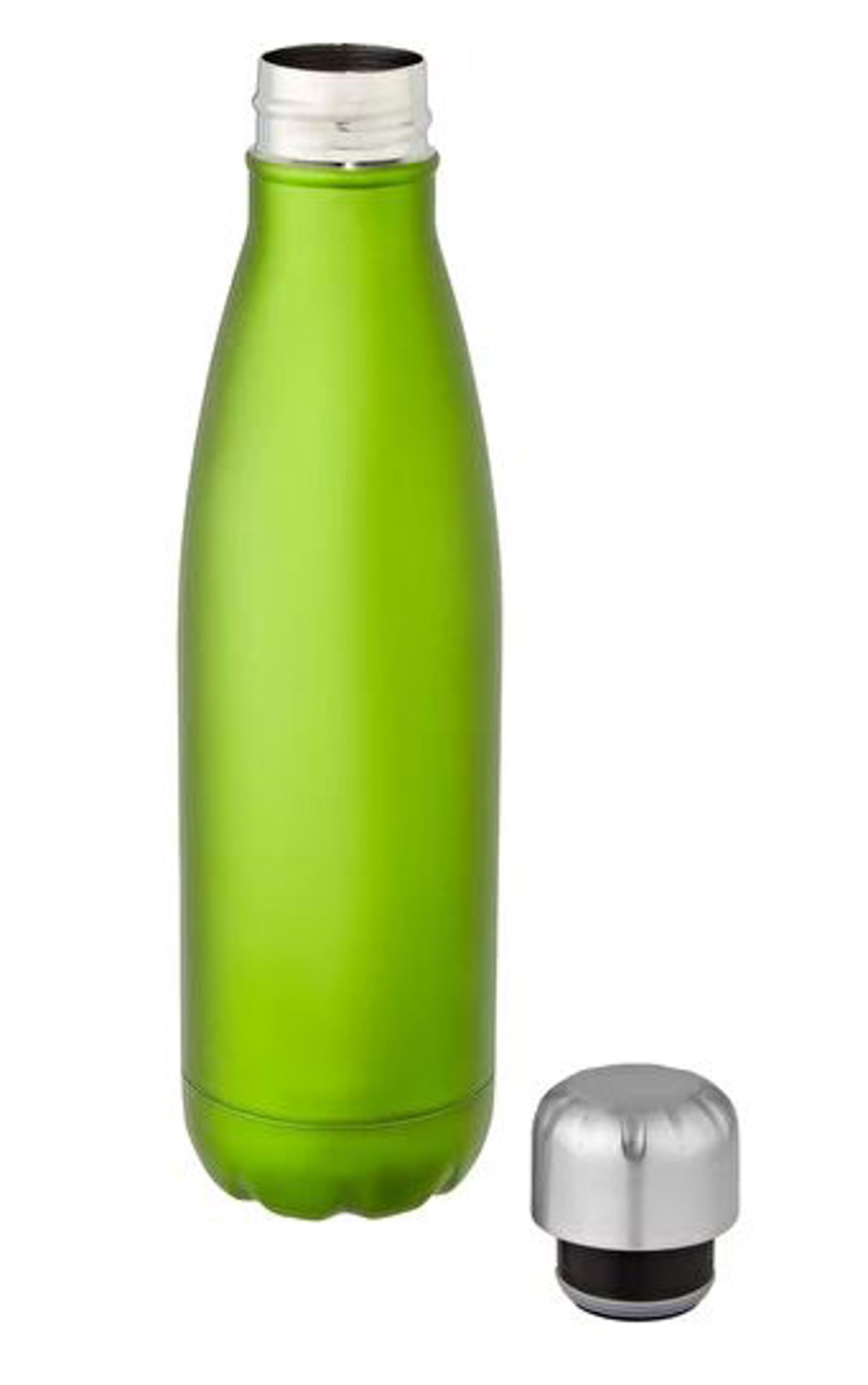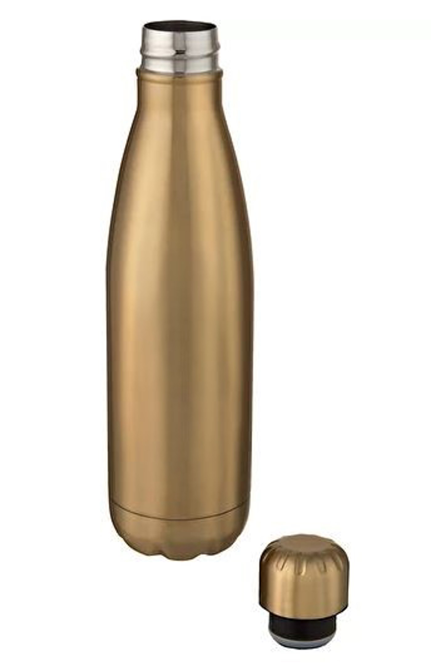 Vakuumisolierte Edelstahlflasche mit kultigem Design. Der isolierte Edelstahl hält Getränke über mehrere Stunden heiss oder kalt. Mit einem Sockel, der in die meisten Getränkehalter passt, ist diese schlanke Wasserflasche ein perfekter Werbeartikel. Das Fassungsvermögen beträgt 500 ml. In folgenden Farben erhältlich: Weiss, Titan, Schwarz, Royalblau, Rot, Lindgrün, Grau, Gold