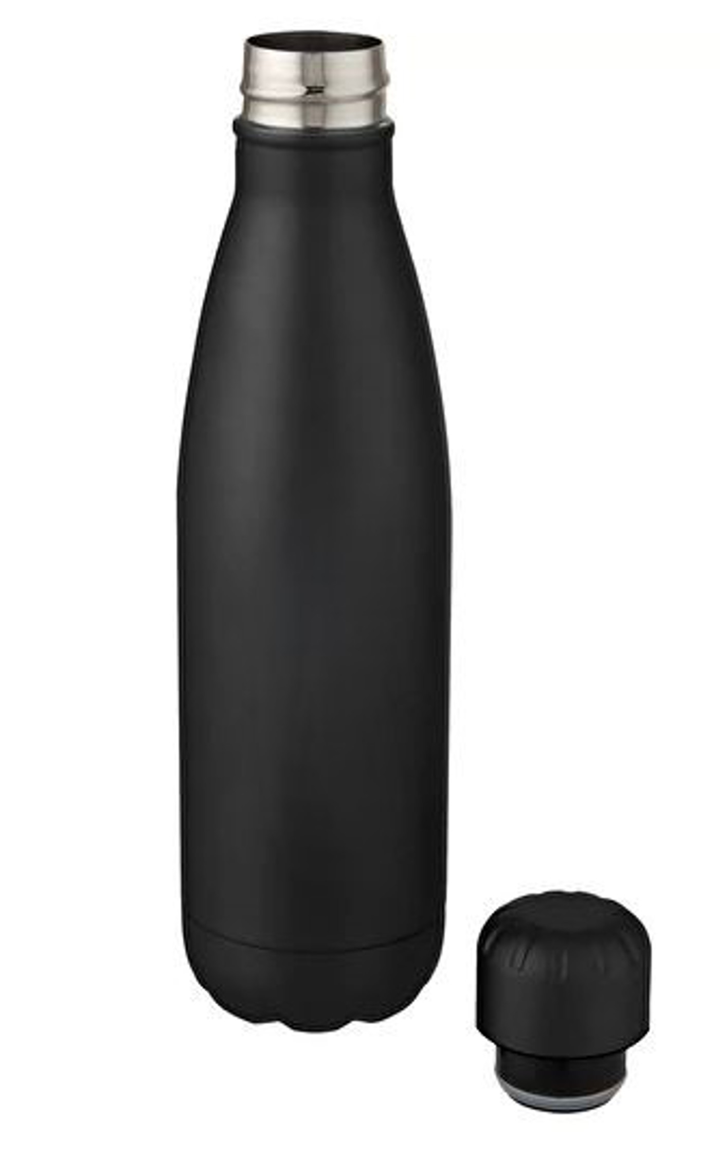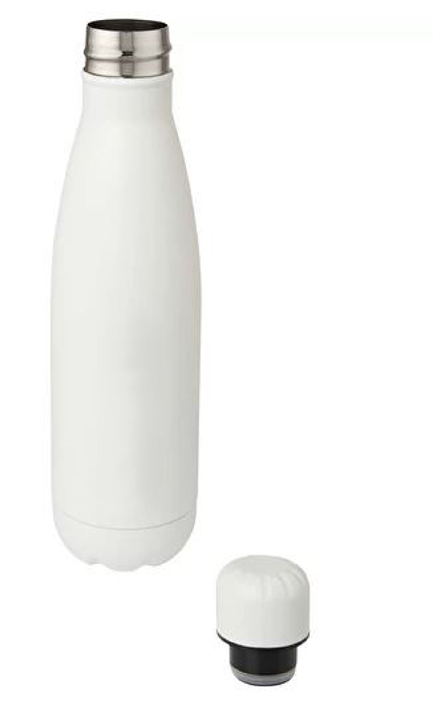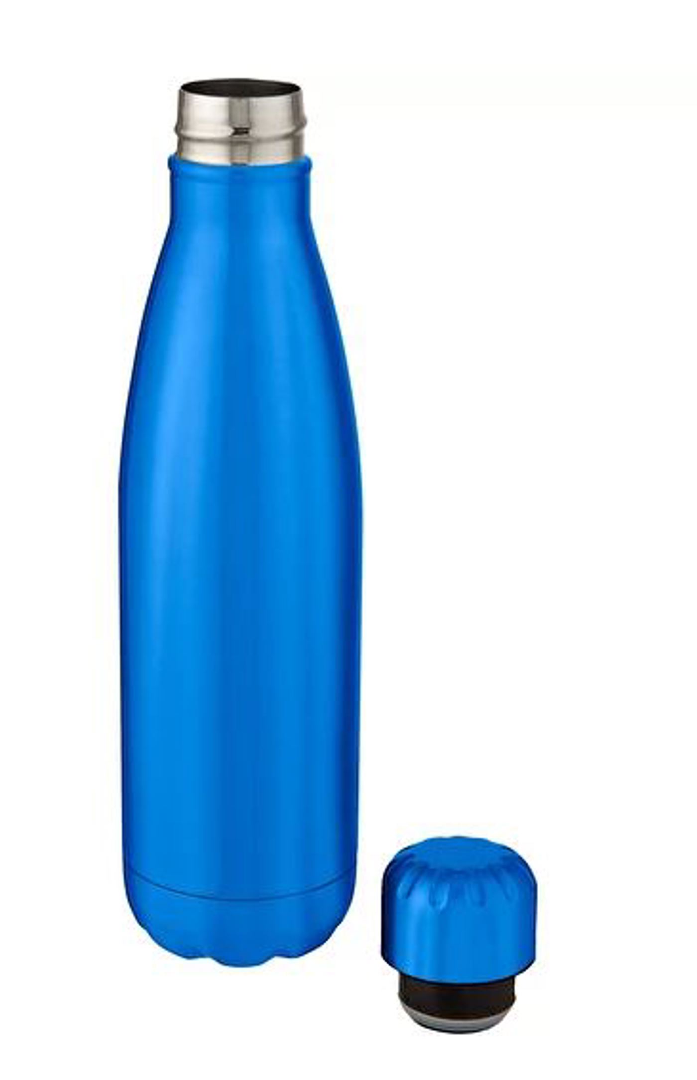 Vakuumisolierte Edelstahlflasche mit kultigem Design. Der isolierte Edelstahl hält Getränke über mehrere Stunden heiss oder kalt. Mit einem Sockel, der in die meisten Getränkehalter passt, ist diese schlanke Wasserflasche ein perfekter Werbeartikel. Das Fassungsvermögen beträgt 500 ml. In folgenden Farben erhältlich: Weiss, Titan, Schwarz, Royalblau, Rot, Lindgrün, Grau, Gold