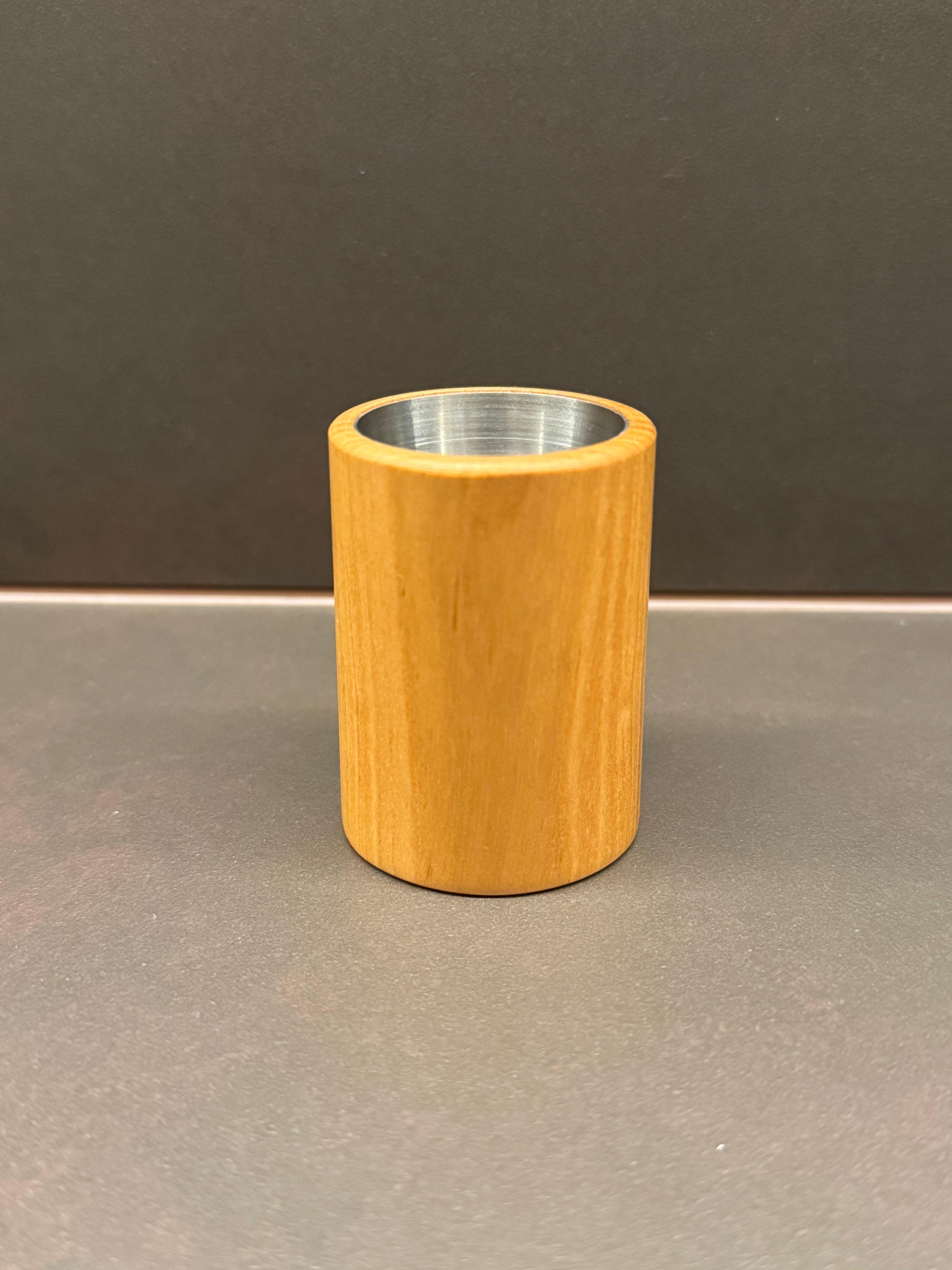Hochwertiges Schnapsbecher-Set aus handgedrechseltem Massivholz mit robustem Edelstahl-Einsatz. Vier einzigartige Unikate für stilvollen Genuss und besondere Anlässe.